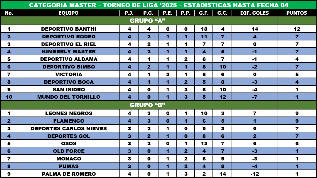 CATEGORIA MASTER - TORNEO DE LIGA '2025